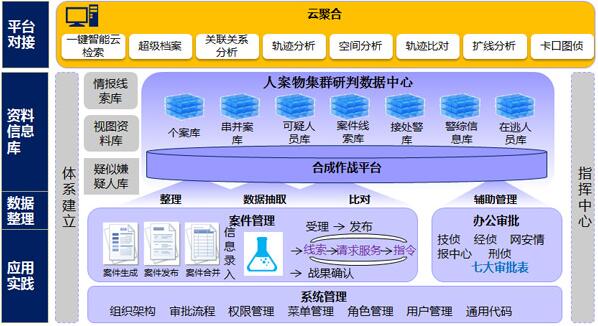 “警務(wù)合成作戰(zhàn)系統(tǒng)平臺”主要強調(diào)的是在統(tǒng)一的平臺下,實現(xiàn)情報信息主導(dǎo)警務(wù)工作的目標,變數(shù)據(jù)為情報,發(fā)揮情報信息在“偵察破案、執(zhí)法辦案、防范控案、分析決策”方面的作用,實現(xiàn)對犯罪的“主動防范、精確打擊。本平臺軟件主要針對公安機關(guān)的實際業(yè)務(wù)需求為主導(dǎo),嚴格遵循公安部門相關(guān)標準和規(guī)范進行設(shè)計、實施。系統(tǒng)主要功能如下: