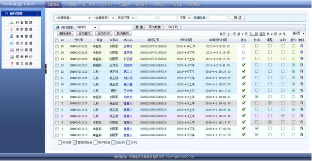 5、 黑名單功能:對多次預(yù)約未來就診的患者,設(shè)定黑名單,拒絕預(yù)約。