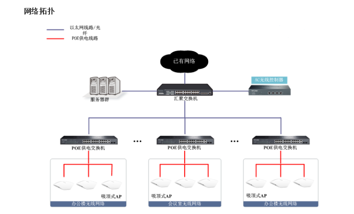 辦公職員通過無線網(wǎng)絡(luò)可以在辦公區(qū)內(nèi)隨時地接入企業(yè)內(nèi)部網(wǎng)絡(luò)和Internet,來完成各種業(yè)務(wù)工作的處理。另外WLAN網(wǎng)絡(luò)解決以往的有線端口接入限制、硬件維護工作繁瑣、線路多、可移動性弱等問題,對企業(yè)網(wǎng)絡(luò)管理人員也是一個實質(zhì)性的變革。