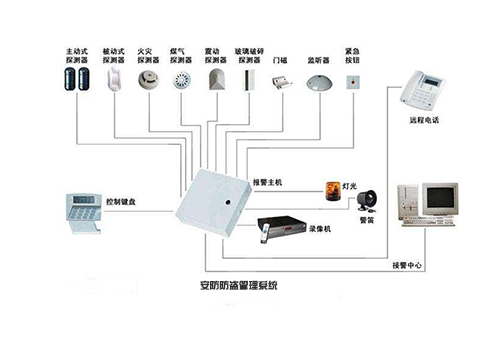 防盜報(bào)警系統(tǒng)由報(bào)警主機(jī)、紅外雙鑒探測器、聲光報(bào)警器等設(shè)備組成。